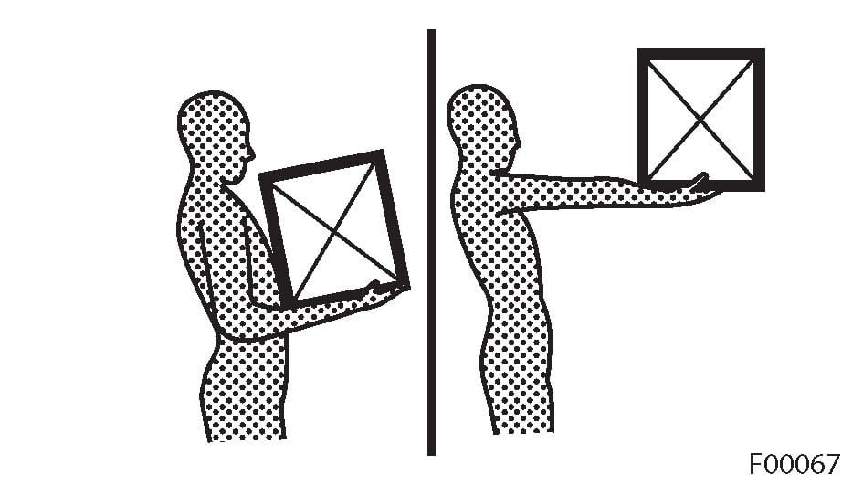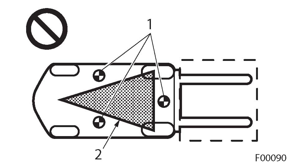 - Keep the center of gravity low and avoid off-center loading. Off-center loads could cause tip-over or falling loads.