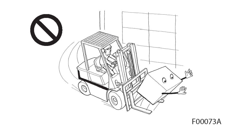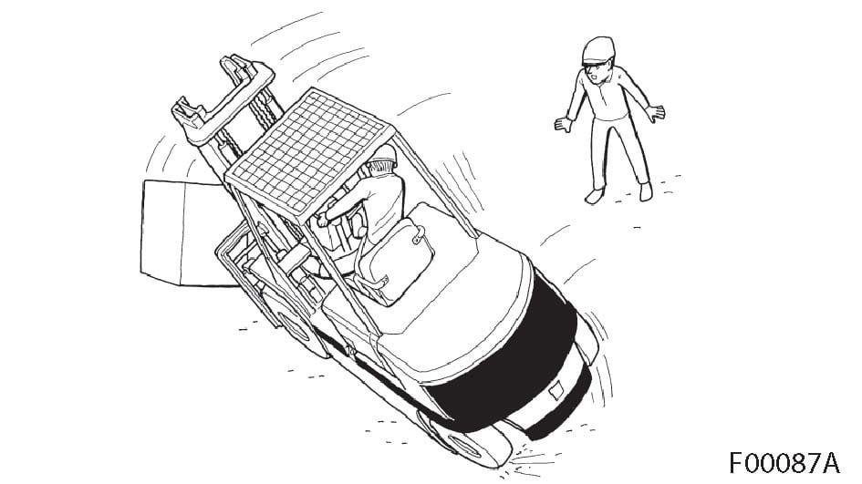 Do not make fast or sharp turns with a loaded or unloaded lift truck!