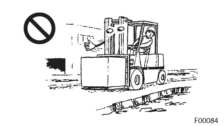 - Slowly operate the lift truck when picking up or placing a long or wide load, or when turning with such a load.