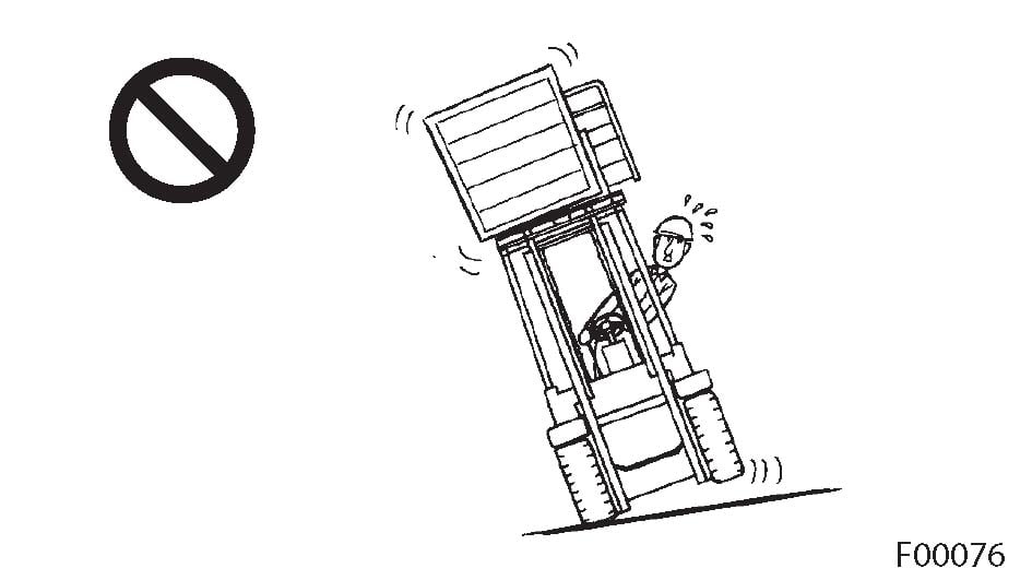 Do not turn sharply, even with an empty raised mast, to avoid a tip-over!