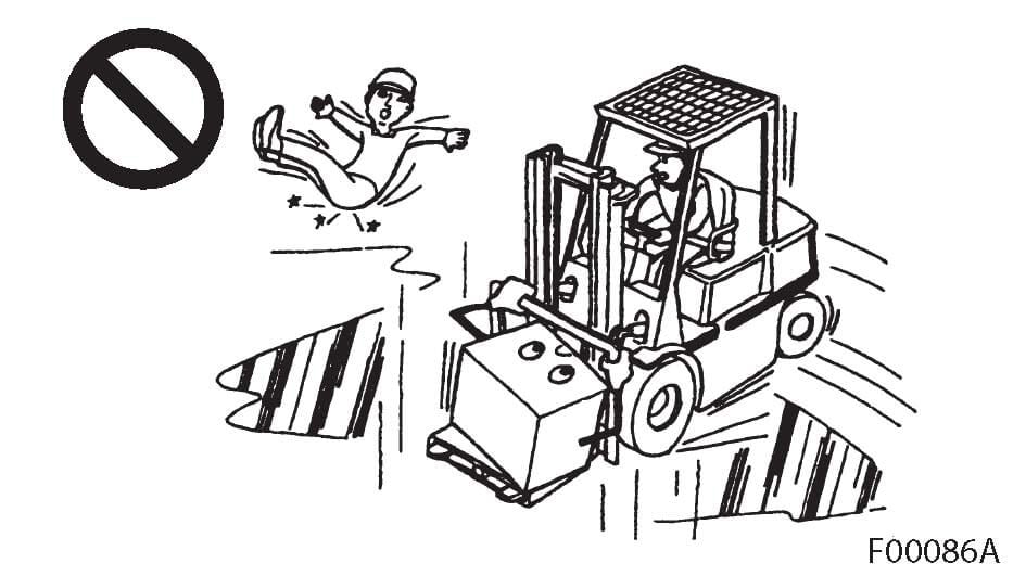 Always maintain a safe distance from the edge of docks, ramps, and platforms. The lift truck could drop off the edge if you get too close to the edge.